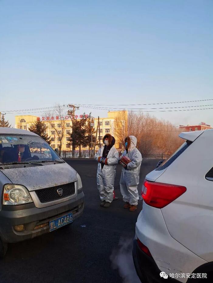 铁肩担道义,白衣报国恩;党旗指方向,妙手托仁心。在国家有难之际,我院于永达院长主动请战,要求承担100中学卡点24小时测体温的任务,院长亲自上阵,带领着精神科主任田桦,医生孙昀昊,财务赵岩等多名医护,驻扎卡点,认真监测进出城人员体温。夜间的寒风凛冽,测温枪在寒冷的地方就容易失灵,他们就用手捂着测温枪,用自己的体温保证着测温枪的正常使用以保证准确的测得进出城人员的体温,此时,穿着笨重防护服的他们,显得格外的可爱。脱下防护服,每个人的眼睛都挂着血丝,每个人的脸上都有勒痕,每个人的双手都过度消毒泛着干裂……